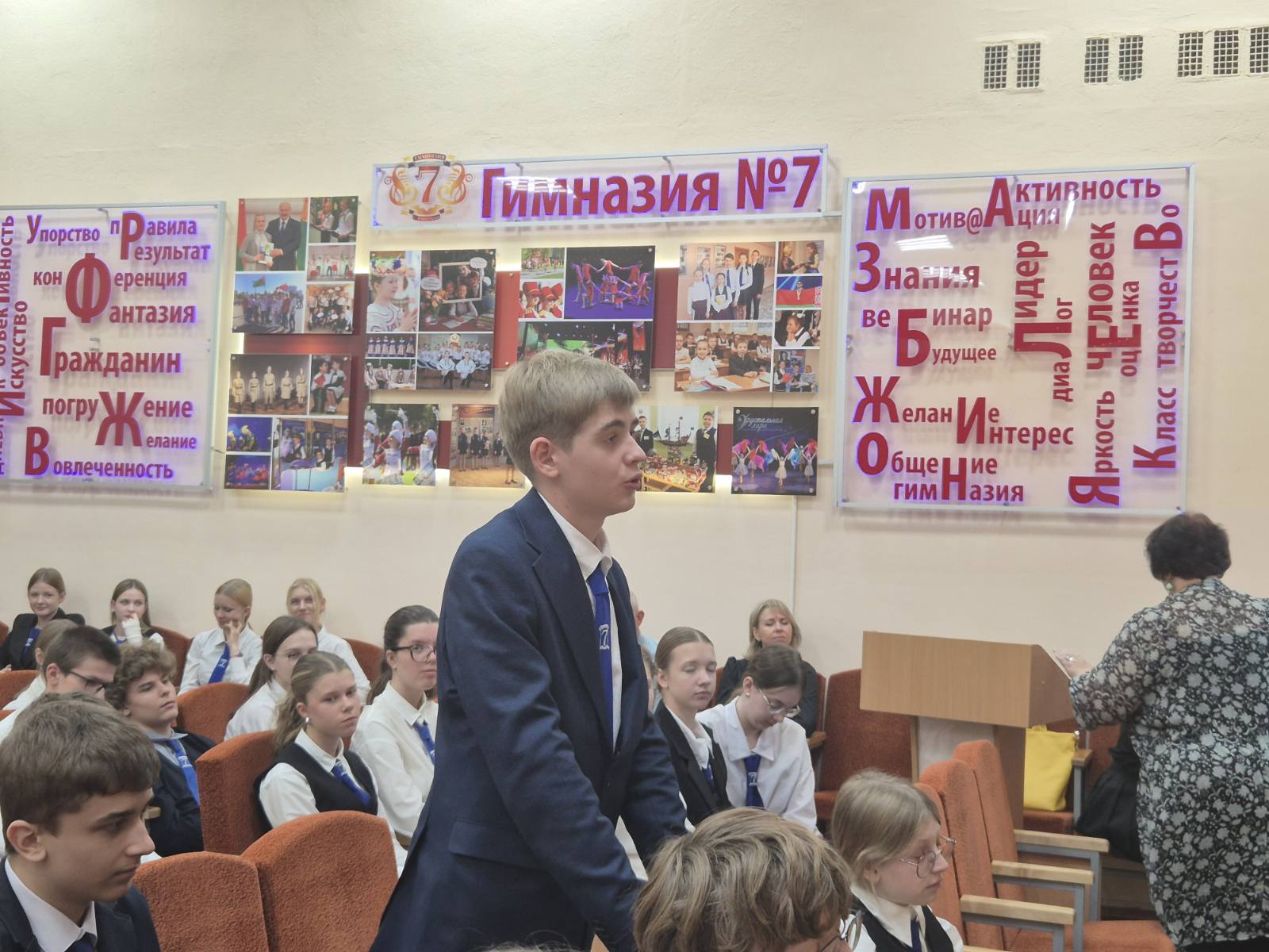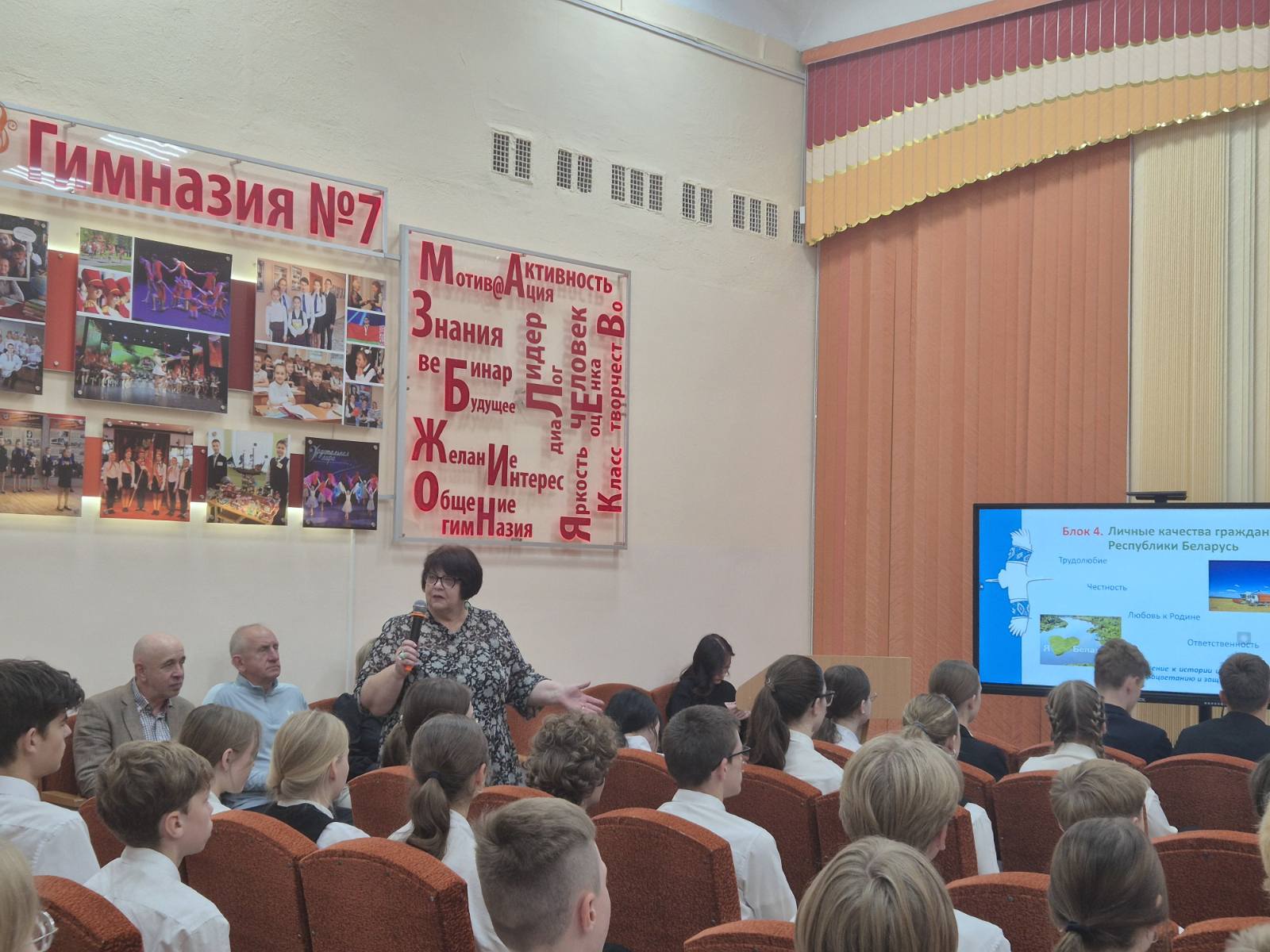 25 сентября прошло очередное заседание информационно-образовательного проекта «ШАГ» на тему: «Быть достойным гражданином Республики Беларусь – значит демонстрировать преданность своей Родине». В мероприятии приняли участие ведущие специалисты и лекторы, среди которых главный специалист отдела по делам молодежи, религий и национальностей Витебского облисполкома Дмитрий Геннадьевич Кузнецов и Артур Владиславович Витоль, руководитель по военно-патриотическому воспитанию Игорь Павлович Федоров, лектор общества «Знание» Виктор Леонардович Липский, а также участник международного проекта «Таврида» и учитель биологии Дарья Михайловна Бабарень.