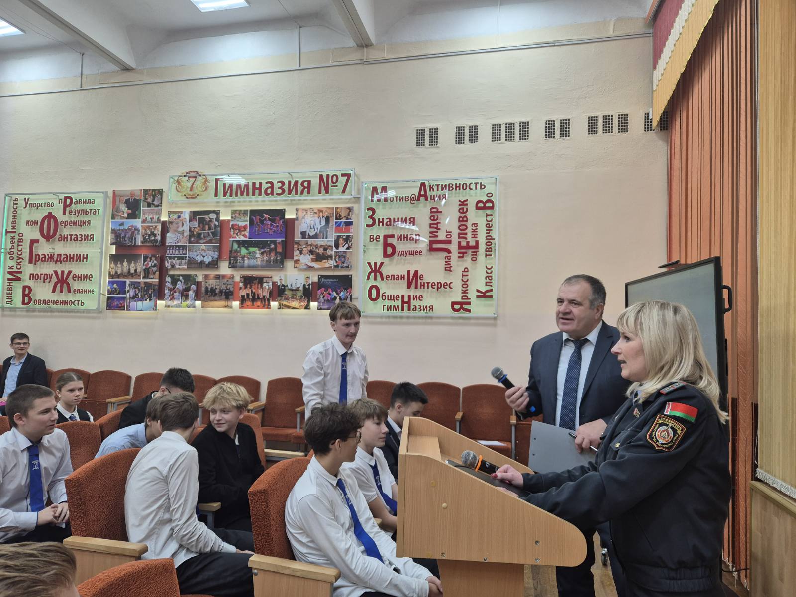 23 октября в гимназии №7 прошел социальный диалог «Преступления, безопасность, будущее» с участием старшего оперуполномоченного отдела оперативно-аналитической работы управления по противодействию киберпреступности УВД Витебского облисполкома Колдыбовой Юлии Сергеевны. В ходе мероприятия учащиеся обсудили вопросы кибербезопасности, рассмотрели реальные случаи киберпреступлений и меры их предотвращения.