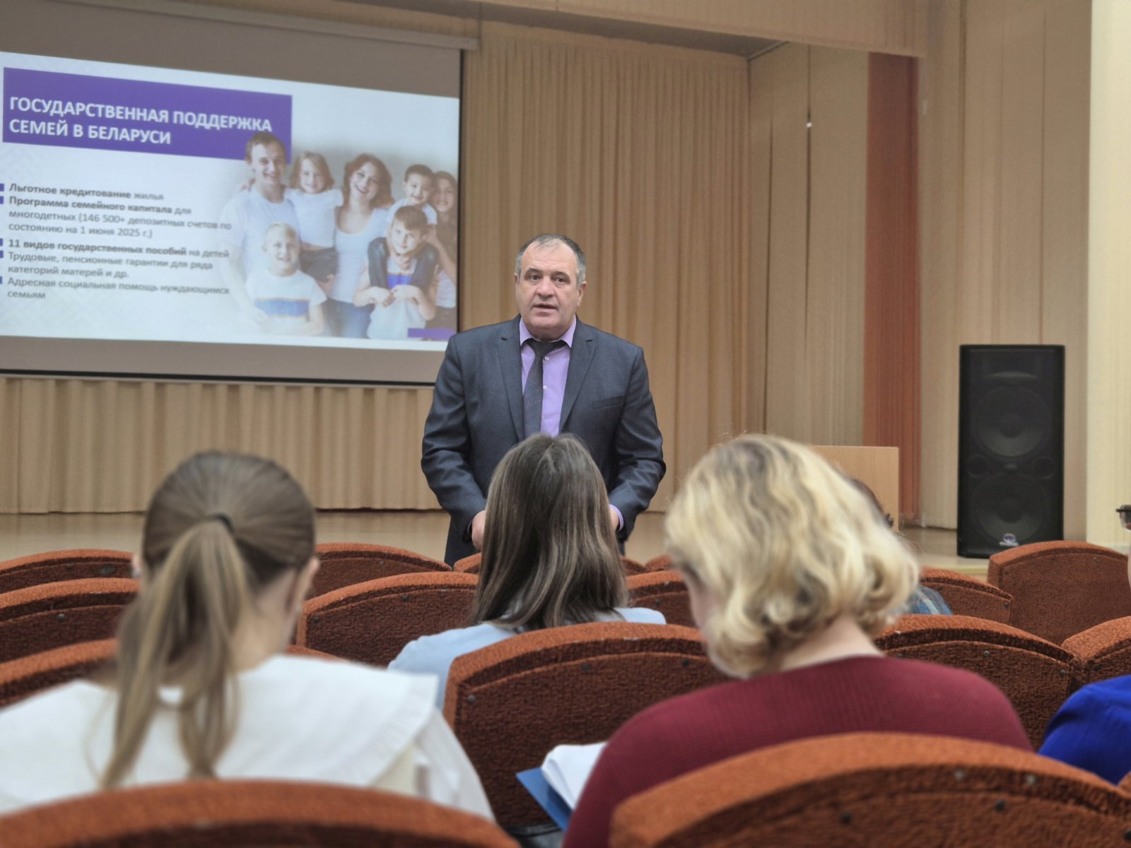 В рамках Единого дня информирования обсуждалась государственная политика Беларуси, направленная на сохранение традиционной семьи. В этой модели отец рассматривается как глава семьи, основа всего рода, хранитель опыта, силы и мудрости предков. Мать выступает как хранительница очага и духовный центр, создающий атмосферу гармонии и обеспечивающий преемственность поколений. Такая семья считается фундаментом стабильного общества и залогом воспитания молодёжи в духе патриотизма и уважения национальных культурных традиций.